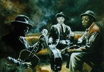 2004Commissioned for a man mad about Jazz music. He can be seen in the centre of the work, while his Jazz Idols 'Jam' in the foreground.
